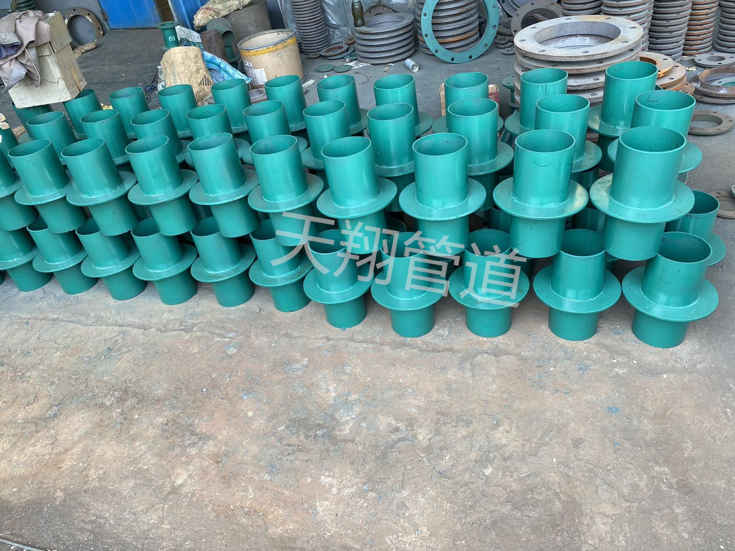 刚性防水套管 主要由碳钢制成。刚性防水套管翼环主要采用自动焊接机与T42焊条焊接,焊缝要求也很高。防水翼环与无缝钢管紧密焊接,不仅提高了刚性防水套管的抗压性,而且在混凝土预埋工程中安装得更牢固。刚性套管外喷涂环氧树脂层,提高了防锈性能,有效保证了无缝钢管在使用过程中不受环境影响,外部始终保持无缝钢管的