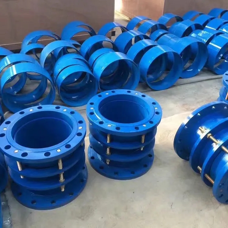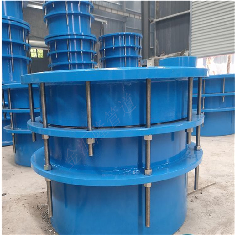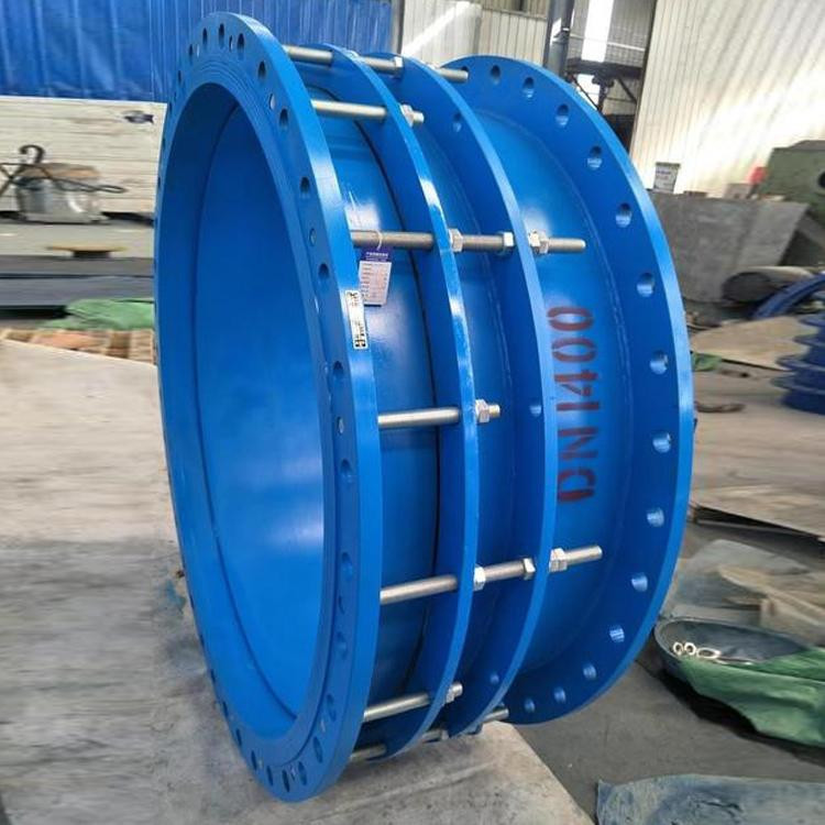 双法兰传力接头 安装时,调节法兰与管道的契合度。双法兰传力接头在单法兰传力接头的基础上增加了一个法兰。双法兰结构更紧,但不能承受高强度的轴向位移。因此,安装时应调整两侧法兰与管道的契合度,并在安装前校准。 双法兰传力接头由法兰松套伸缩接头和短管法兰传力螺杆组成,可降低被连接件的压力推力(盲板力),补